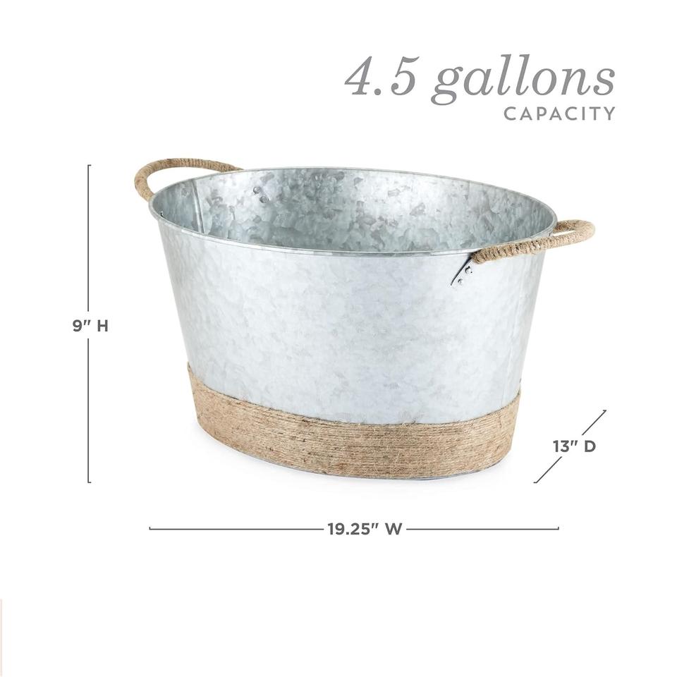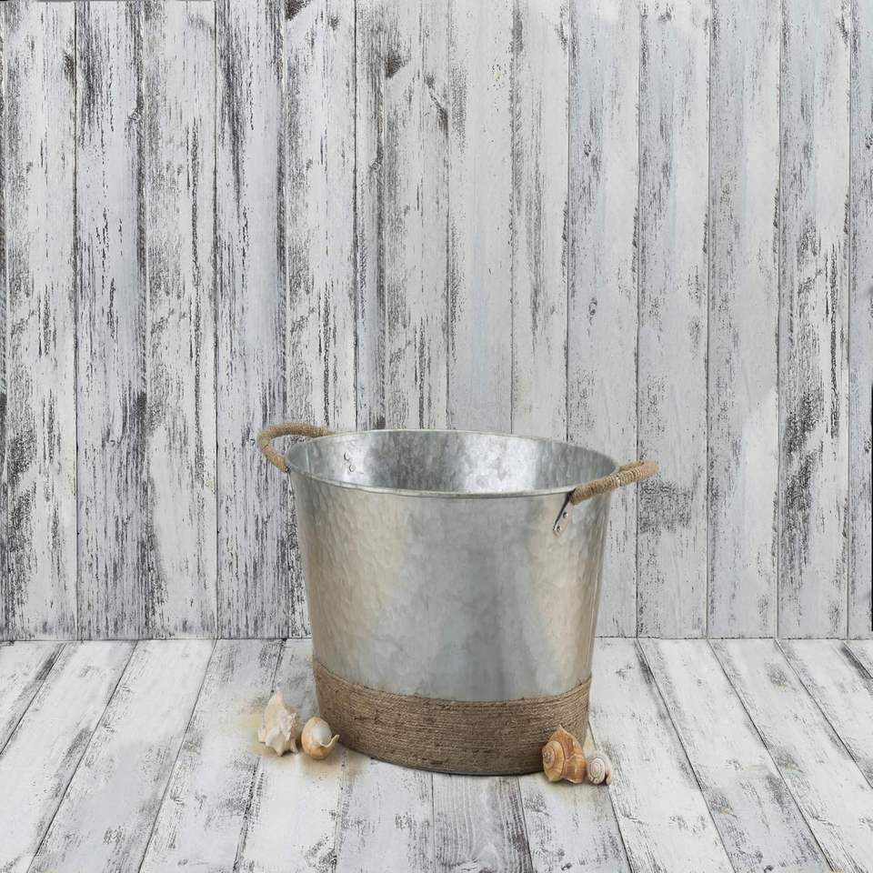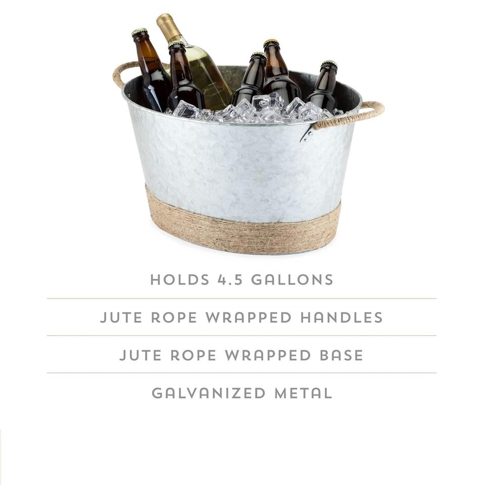 ถังน้ำแข็งโลหะชุบสังกะสีแบบเรียบง่ายสไตล์บ้านไร่ ห่อด้วยเชือกปอกระเจา สำหรับใส่ไวน์ เบียร์ เครื่องดื่ม เหมาะสำหรับงานปาร์ตี้ บาร์ และตกแต่งบ้าน