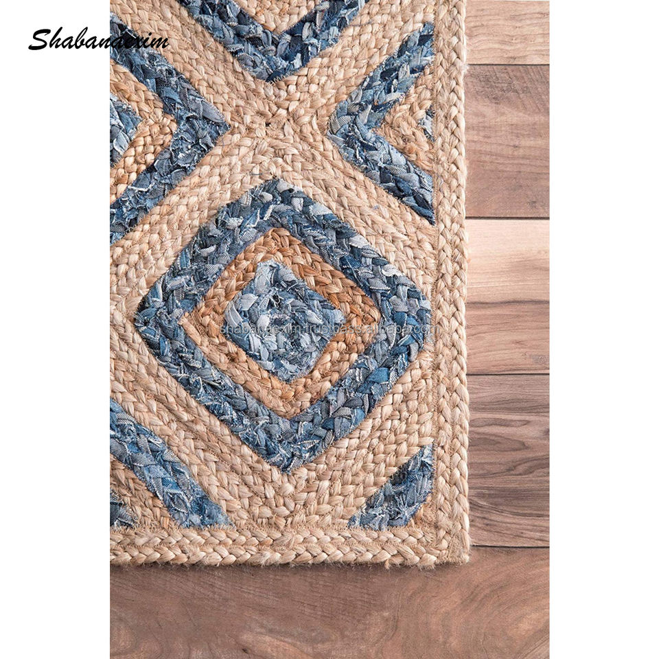 พรมปอกระเจาปูพื้นสี่เหลี่ยมผืนผ้าสำหรับห้องนั่งเล่นผู้ผลิตพรมทอมือในอินเดีย