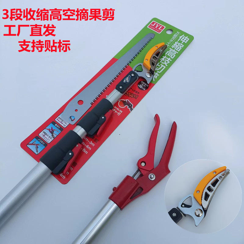 Jxl Telescopic Fruit Picking Shears 3 Section Aluminum Alloy Handle Stainless Steel Blade For High Branch Pruning