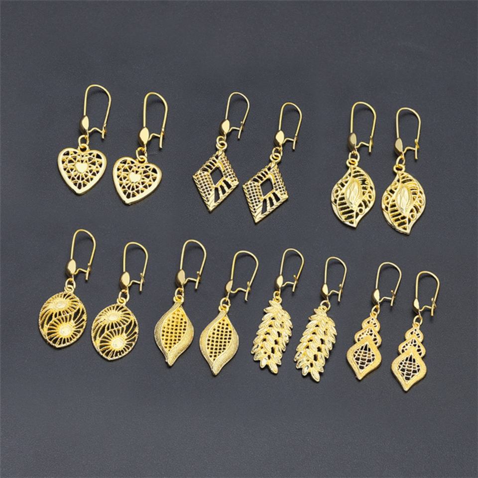 ต่างหูห้อยรูปหัวใจใบไม้ทอง 24k ดีไซน์แฟชั่นใหม่ปี 2023 คุณภาพสูง ผลิตจากทองเหลืองชุบทอง สำหรับผู้หญิง