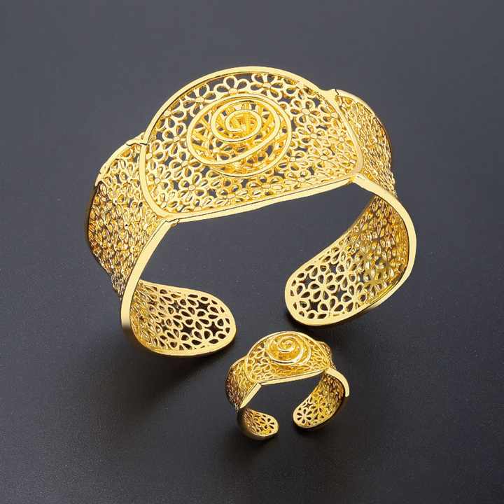 ชุดเครื่องประดับทอง 24K ชุบทองเหลือง ดีไซน์ใหม่จาก Jxx Direct Sale กำไลข้อมือและแหวนแฟชั่นสำหรับผู้หญิง