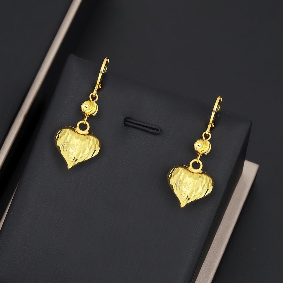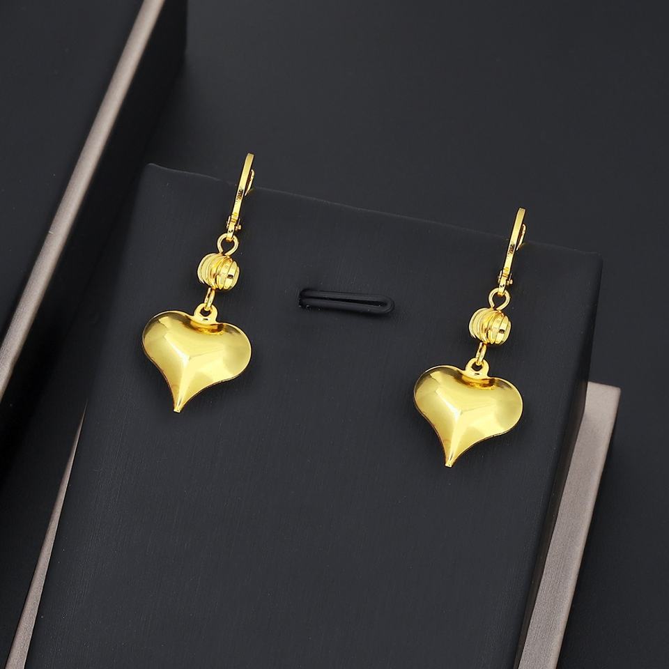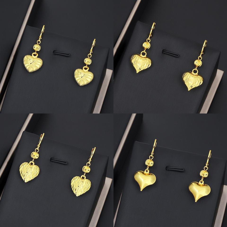 โรงงาน Jxx ขายส่งต่างหูห้อยรูปหัวใจชุบทอง 24k สำหรับผู้หญิง วัสดุหลักทำจากทองเหลือง เครื่องประดับแบบห้อย