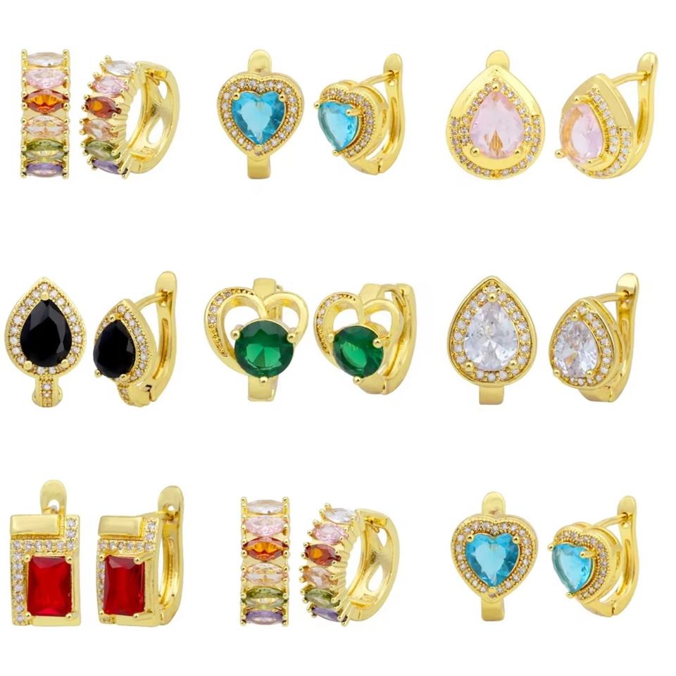 ต่างหูห่วง Jxx Fashion ชุบทอง 18K ทำจากทองเหลืองประดับคริสตัลหรูหรา พร้อมเพชรซิร์คอนสำหรับผู้หญิง