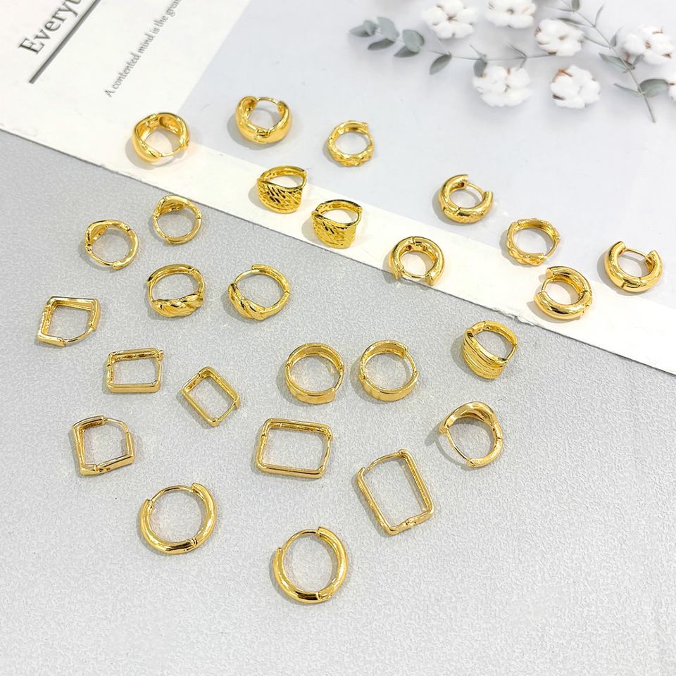 ต่างหูแบบห่วง Jxx Fashion ชุบทอง 18K สำหรับผู้หญิง ทำจากทองเหลือง รูปทรงบิดเกลียวรูปตัว C วัสดุหลักทำจากทองเหลือง