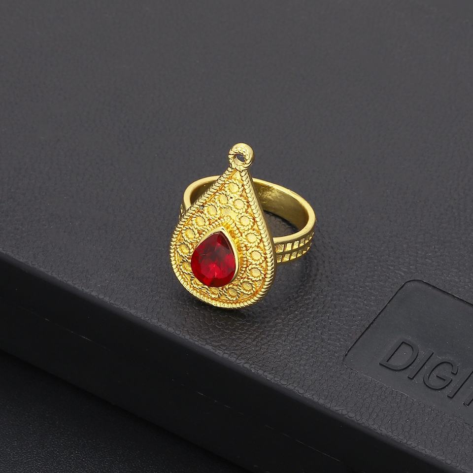 แหวนทองชุบ 24K สไตล์คลาสสิกประดับทับทิมและไพลินจาก Jxx Fashion สำหรับผู้หญิง เหมาะสำหรับเป็นแหวนแต่งงาน