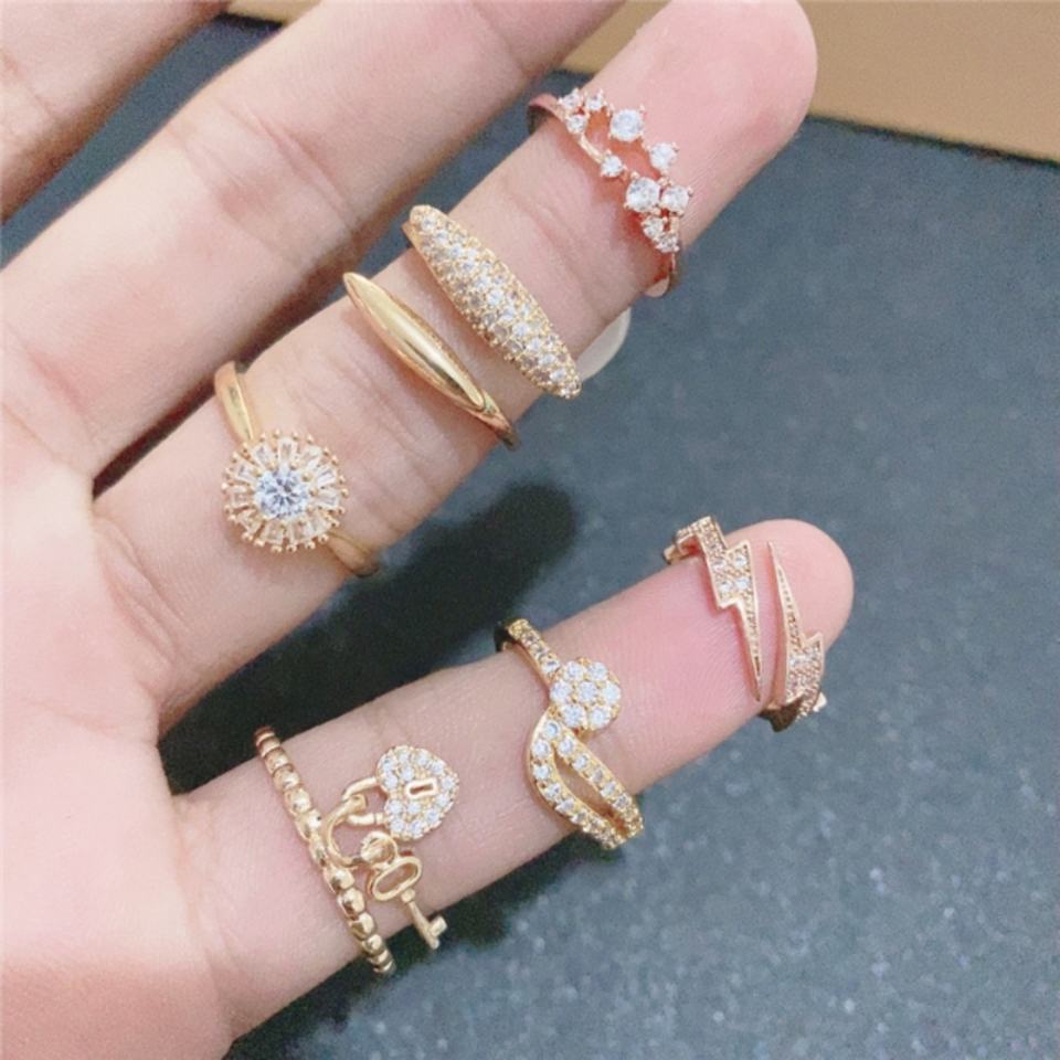 แหวนทองชุบขายส่ง Jxx แหวนแฟชั่นแบบคละแบบสำหรับผู้หญิง แหวนหมั้นราคาถูกประดับเพชรซิร์คอน