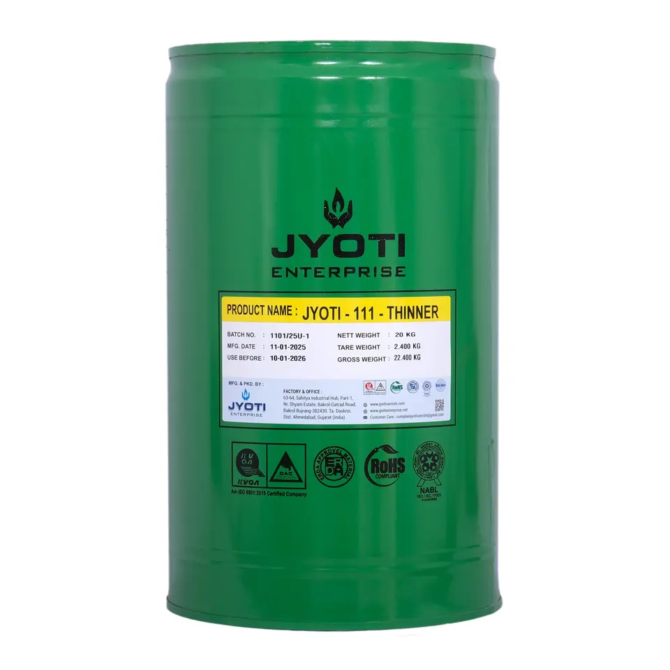 เจโยติ 111 ทินเนอร์ 20 กก. ถังโลหะสีเขียว น้ำยาละลายสีและวานิชสำหรับอุตสาหกรรม ใช้สำหรับเจือจางสีและวานิชโดยบริษัทเอนเตอร์ไพรส์ บรัช แอพพลิเคชั่นส์