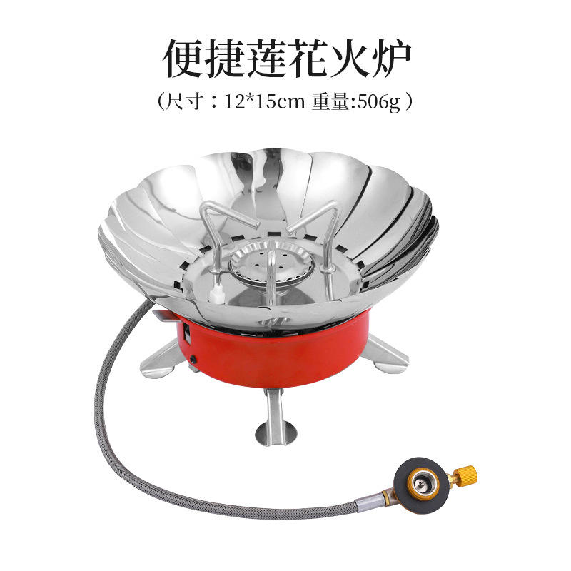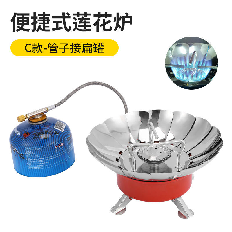 เตาพกพาทรงดอกบัว K-203-3 สีเงิน ป้องกันลม สำหรับตั้งแคมป์กลางแจ้ง พร้อมอุปกรณ์จุดไฟ ต้มน้ำได้ภายใน 3-5 นาที