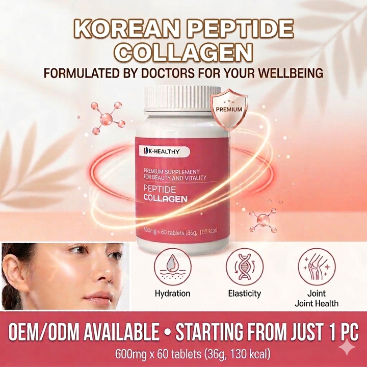 คอลลาเจนเปปไทด์ เค-เฮลตี้ 600 มก. 60 เม็ด บรรจุขวดพลาสติก อายุการเก็บรักษา 2 ปี สำหรับผู้ใหญ่