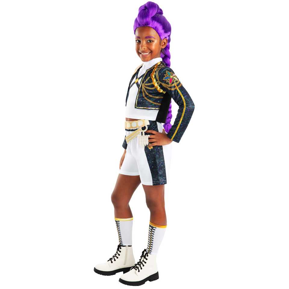 ชุดคอสตูมเด็กผู้หญิง K-Pop Demon Hunters Deluxe Golden Rumi เสื้อ กางเกงขาสั้น พร้อมเข็มขัด 3 มิติ ประดับเลื่อม และที่อุ่นขา