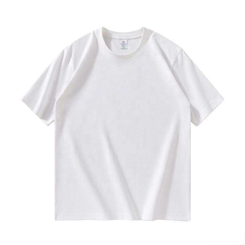K_T เสื้อยืดแขนสั้นทรงหลวมลำลองสะพายไหล่สำหรับทั้งชายและหญิงทำจากผ้าฝ้าย100% 220gsm