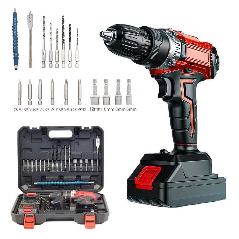 เครื่องมือ K-Tool สว่านไฟฟ้าไร้สาย 21V ขนาด 16 มม. ระดับแรงบิดสูงสุด 25 ระดับ พร้อมชุดดอกสว่าน 24 ชิ้น สำหรับใช้ในบ้านและอุตสาหกรรม