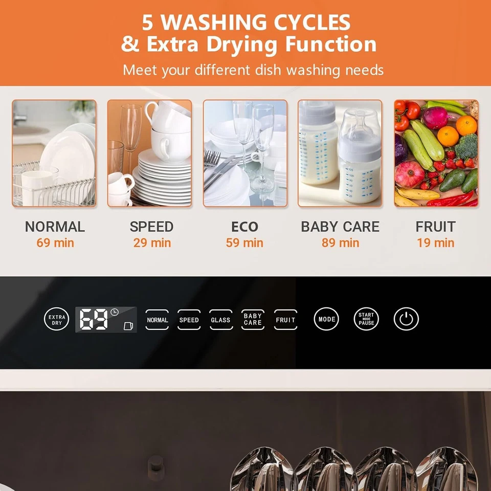 เครื่องล้างจาน K-a-r-l-x-t-o-m T-a-b-l-e T-o-p M-i-n-i 6 โปรแกรม ควบคุมด้วยระบบสัมผัส พร้อมระบบอบแห้งอัตโนมัติ