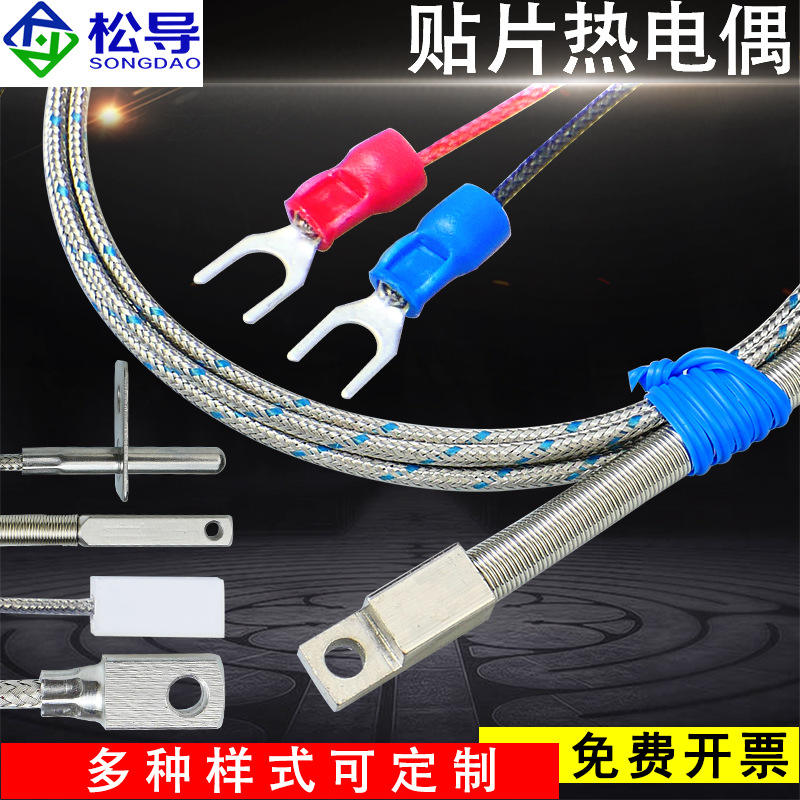 เทอร์โมคัปเปิลแบบ K-type สำหรับวัดอุณหภูมิพื้นผิว พร้อมหัววัดแบบมีรูกลมสำหรับติดตั้ง ทนอุณหภูมิสูง