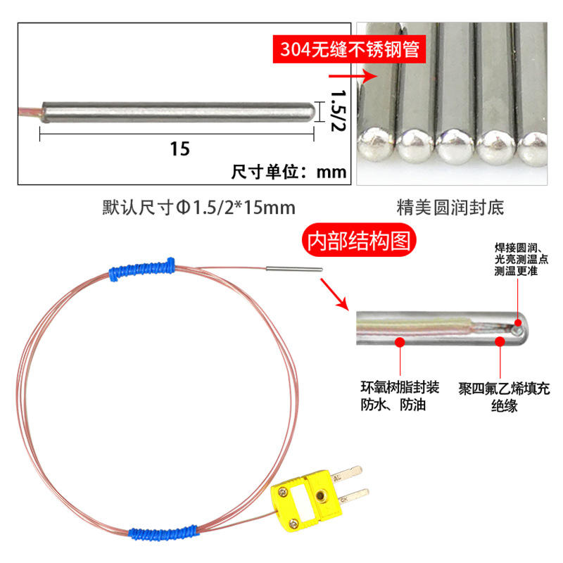 เทอร์โมคัปเปิลแบบหัววัดชนิด K ที่มีความละเอียดสูงเป็นพิเศษ กันน้ำและทนน้ำมัน; เทอร์โมคัปเปิลขนาดเล็กชนิด T และชนิด J