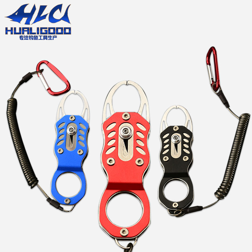 คีมตกปลา K1 สแตนเลสสตีล อลูมิเนียมสำหรับงานอากาศยาน สีฟ้า พร้อมคาราบิเนอร์และตะขอสปริง สำหรับควบคุมปลาและจัดการเหยื่อตกปลา
