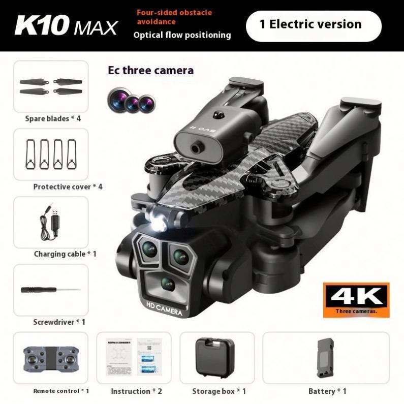 โดรน K10 MAX ความคมชัดสูง กล้องสามตัว หลบหลีกสิ่งกีดขวาง ระบบออปติคอลโฟลว์ ควบคุมระยะไกล โดรนสี่แกน สำหรับผู้เริ่มต้น/นักเรียน ระยะบิน 3 กม.