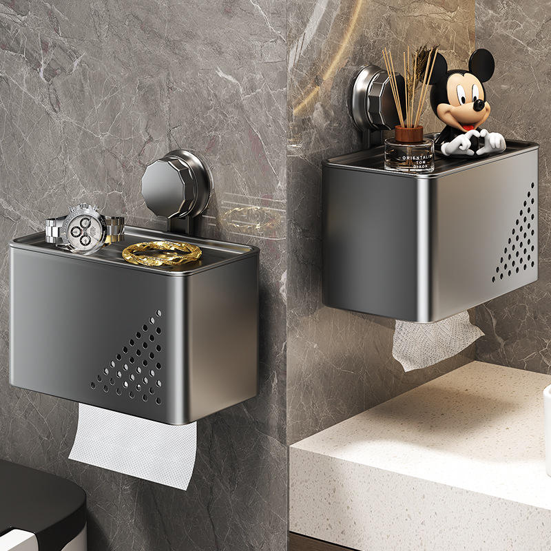 K20 ที่ใส่กระดาษชำระแบบติดผนังทรงสี่เหลี่ยม สีเทากันเมทัล กล่องเก็บของกันน้ำสำหรับใช้ในห้องน้ำ
