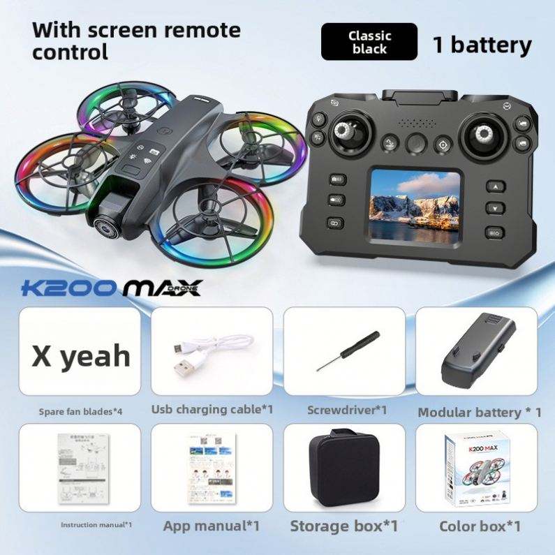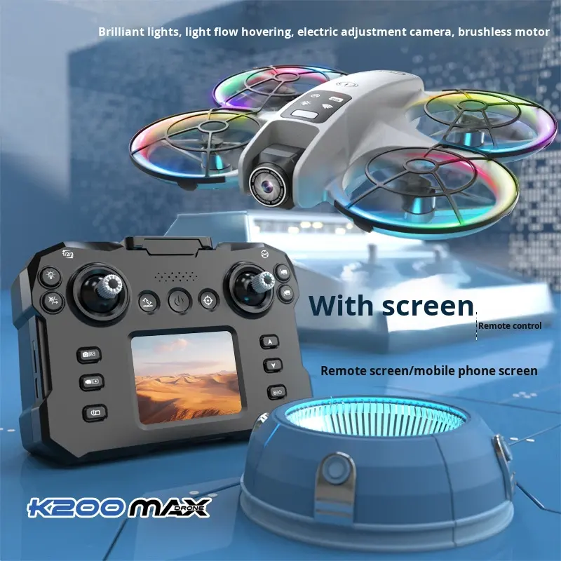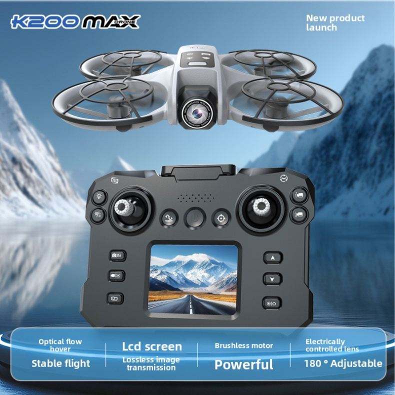 โดรน K200 พลาสติกพับได้ 4K สำหรับผู้เริ่มต้น ใช้มอเตอร์แบบไร้แปรงถ่าน พร้อมหน้าจอ ถ่ายภาพทางอากาศ ระบบ Optical Flow Positioning