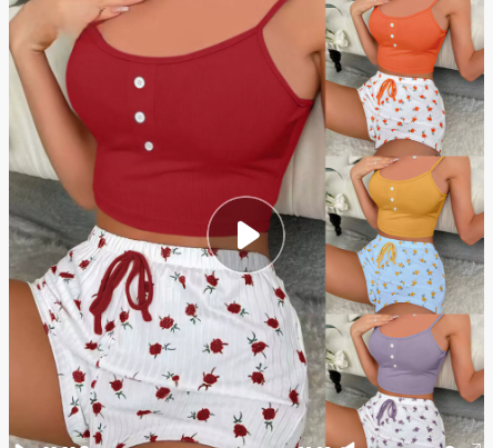 ชุดนอนผู้หญิง K2084 ลายดอกไม้แฟชั่น 2 ชิ้น ชุดนอนผู้หญิง มีสินค้าพร้อมส่ง