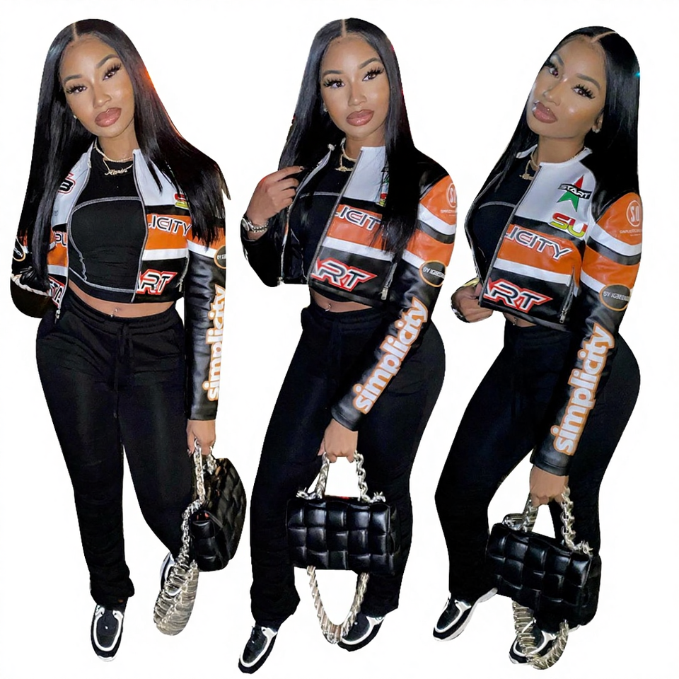 เสื้อแจ็คเก็ตมอเตอร์ไซค์ผู้หญิง K210 รุ่นใหม่ล่าสุด แฟชั่นฤดูใบไม้ร่วง 2023 ฤดูใบไม้ผลิ คอตั้ง ซิปปิด ดีไซน์ลายพิมพ์ ผ้าโพลีเอสเตอร์