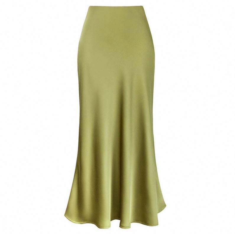 กระโปรงทรงเอเอซีทิคแอซิดซาตินสำหรับผู้หญิง ความยาวปานกลางถึงยาว ทรงหางปลา ช่วยกระชับเอว ทรงเอไลน์ กระชับสะโพก เอวสูง