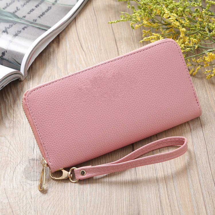 กระเป๋าสตางค์มีซิปสีชมพูสำหรับผู้หญิงมีช่องใส่โทรศัพท์มีช่องใส่บัตรกระเป๋าสตางค์แบบสั้นมีพู่ประดับด้วยกระเป๋าสำหรับใส่เหรียญดีไซน์แบบเย็บปะติดสำหรับผู้หญิง K273ยาว