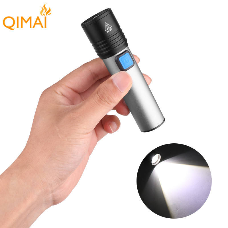 K31 ไฟฉายขนาดเล็ก T6 LED แบบชาร์จไฟได้ 1200mAh แบตเตอรี่ในตัวชาร์จ USB แบบพกพาซูมแบบยืดหดได้แสงสีขาว