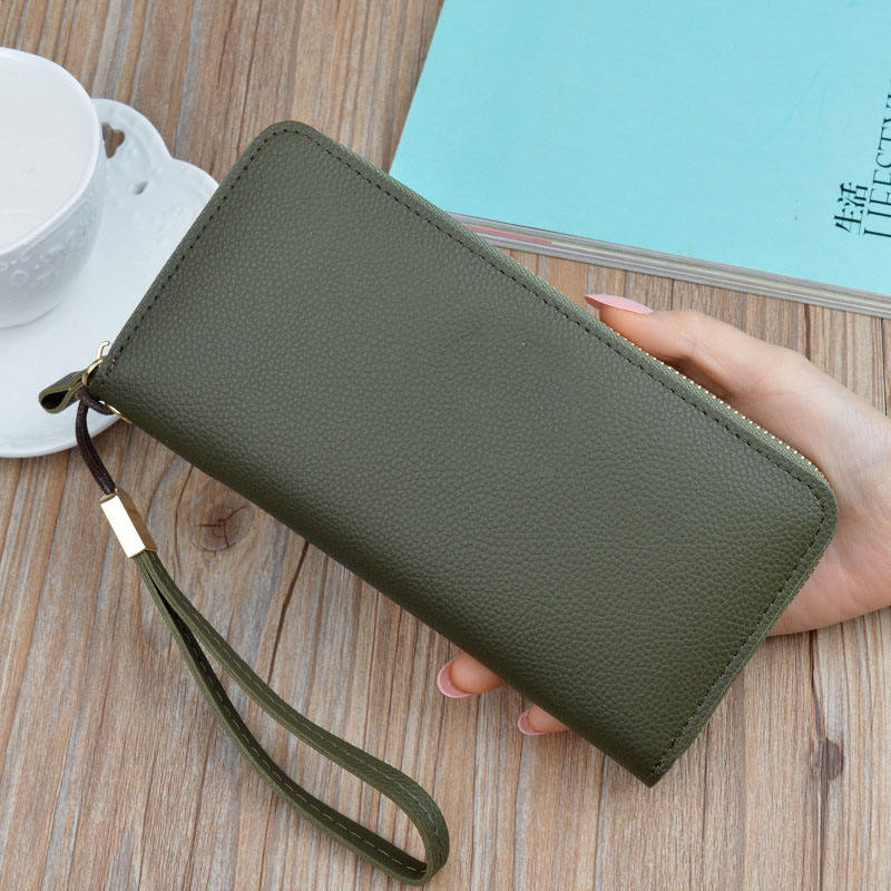 K397กระเป๋าสตางค์มีซิป PU ของผู้หญิงกระเป๋ายาวมีช่องใส่โทรศัพท์กระเป๋าใส่บัตรกระเป๋าสตางค์แบบสั้นมีพู่ห้อยสีบริสุทธิ์กันน้ำ