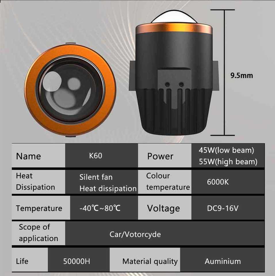 K60 2.0นิ้ว6000K ชิป90000LM 3570ไฟ LED กันน้ำได้หลอดไฟตัดหมอกไฟหน้าแบบคู่
