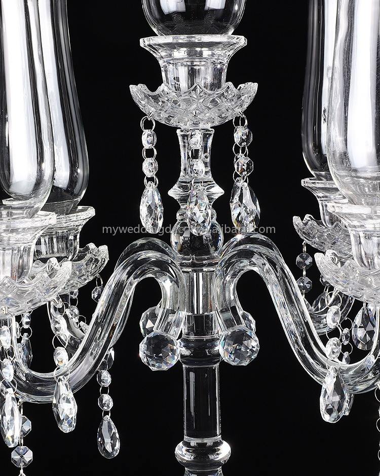 เชิงเทียนแก้วคริสตัลทรงเรียวแบบโมเดิร์น รุ่น K62 ขนาด 40 นิ้ว 5 แขน พร้อมโซ่แบบโคมระย้า ปรับแต่งขนาดและสีได้