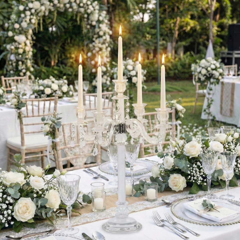 เชิงเทียนคริสตัลทรงโมเดิร์นคุณภาพสูง 5 แขน รุ่น K62 - ปรับแต่งขนาดและสีได้ ใช้เป็นของตกแต่งกลางโต๊ะ