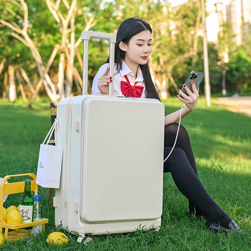 กระเป๋าเดินทางแบบเปิดด้านหน้า K73 ขนาด 20 ลิตร สีพื้น พร้อมซิปล็อค ล้อหมุนได้ สำหรับเดินทางท่องเที่ยวและใส่เสื้อผ้า ฤดูร้อน 2023