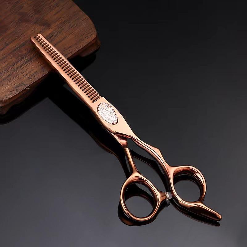 กรรไกรซอยผมสีม่วงทองขนาด 6.0 นิ้ว รุ่น K7T สำหรับช่างทำผม ใช้ในร้านเสริมสวย กรรไกรสำหรับคนถนัดขวา ตกแต่งด้วยคริสตัล