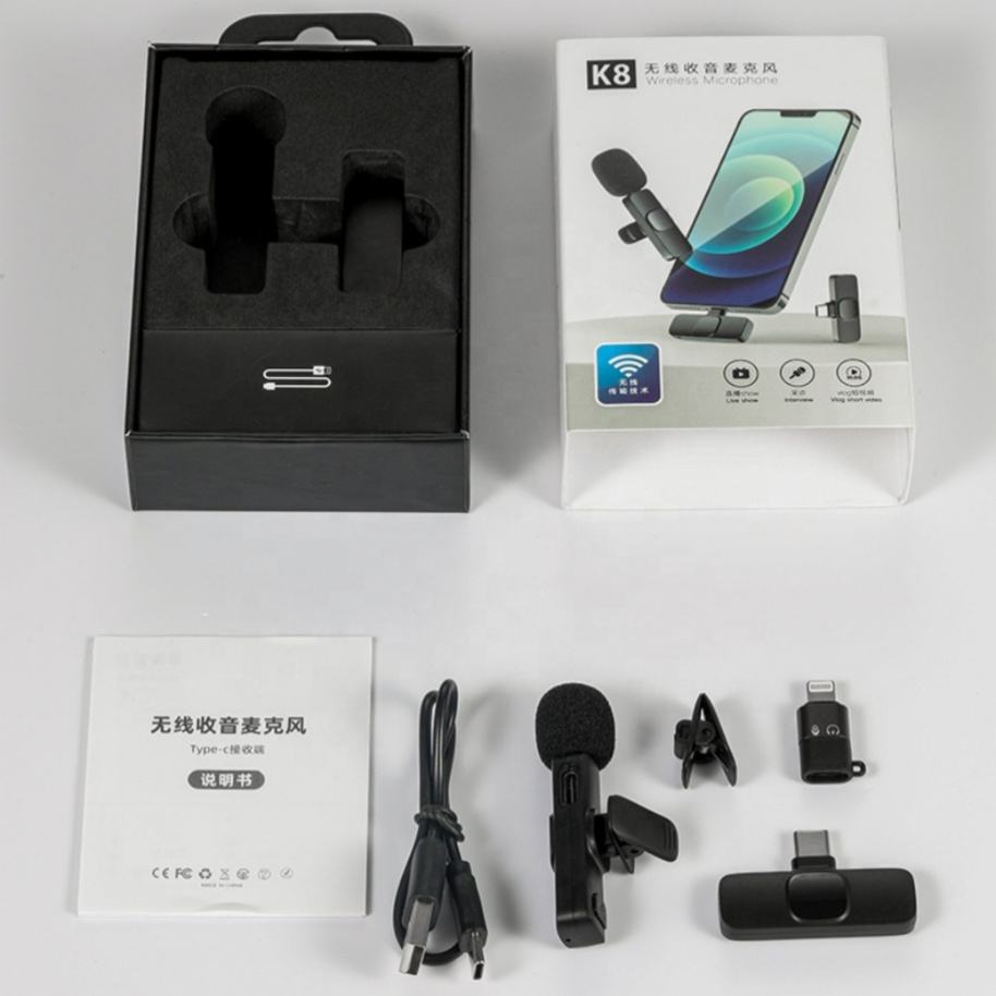 K8 K9แบบพกพาไมโครโฟนไร้สายคู่แบบ3-in-1บันทึกวิดีโอและเสียงสำหรับมือถือ vlogging iOS เข้ากันได้