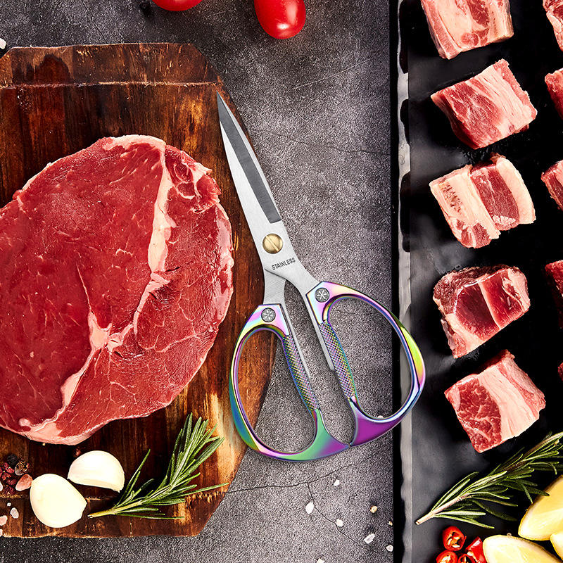 K82 Stainless Steel Kitchen Shears Straight Head Heavy Duty For Meat Cutting Household Use Silver Gold Finish