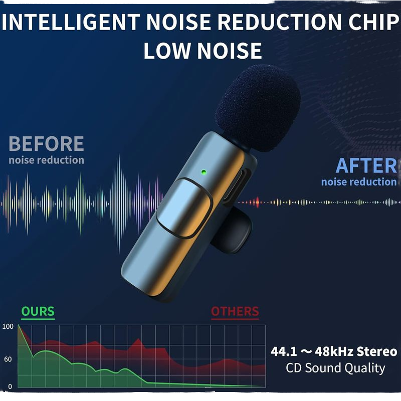ไมโครโฟนไร้สายแบบหนีบปกเสื้อ K9 Professional แบบรอบทิศทาง พร้อมระบบตัดเสียงรบกวน ใช้งานได้กับ iPhone Android และ YouTube