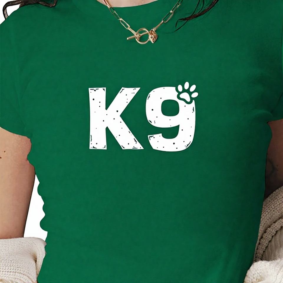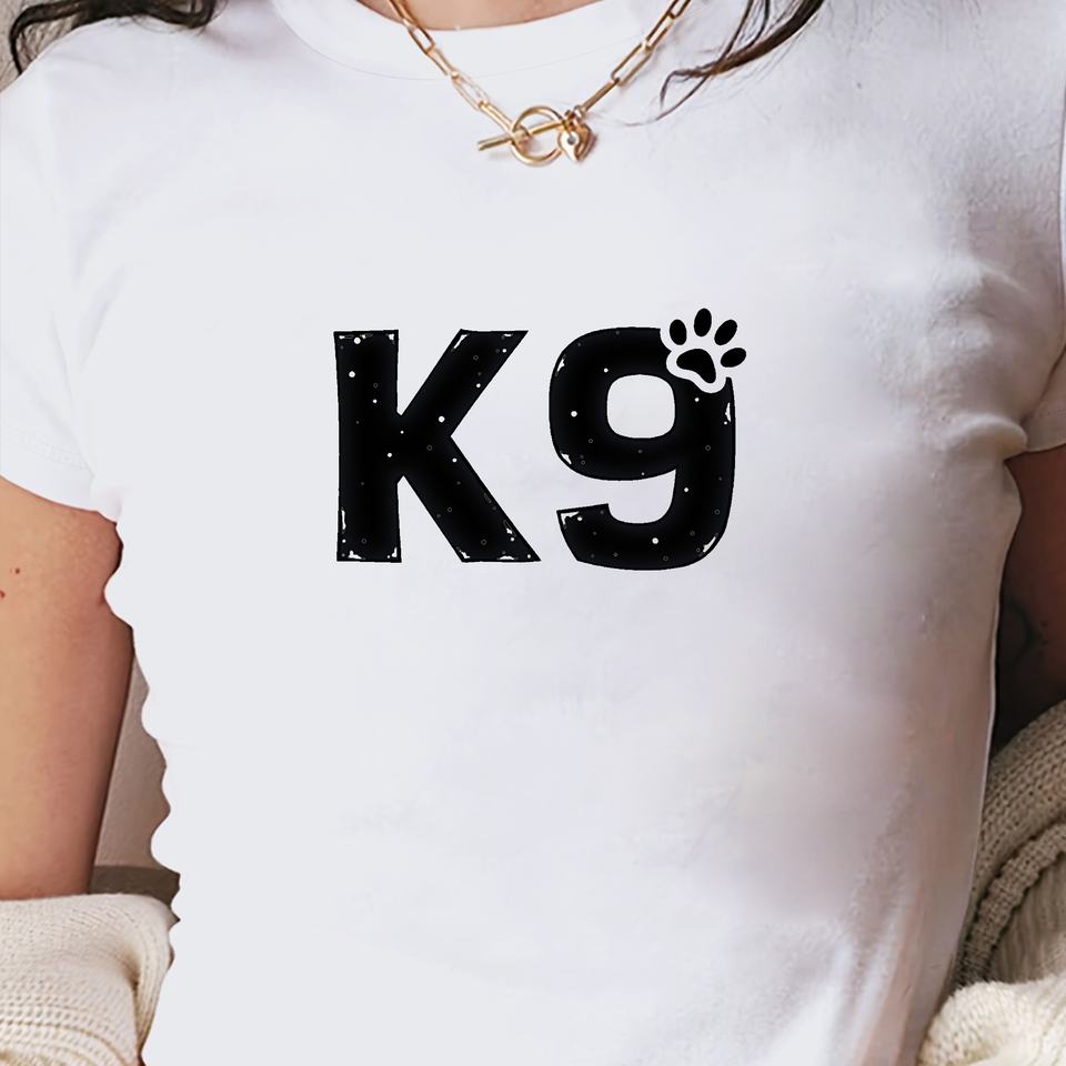 เสื้อยืดแฟชั่นผู้หญิงทรงสั้น คอวี ผ้าถัก ยืดหยุ่นได้ ผลิตจากผ้าสแปนเด็กซ์/โพลีเอสเตอร์ ดีไซน์ลายเท้าสัตว์เลี้ยง สไตล์ Y2K รุ่น K9