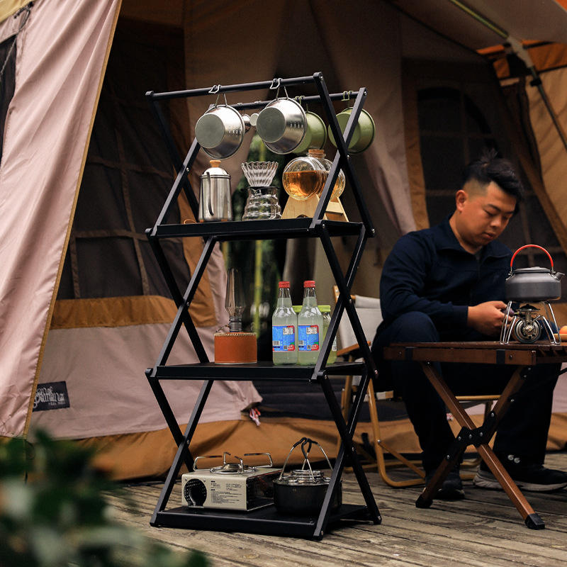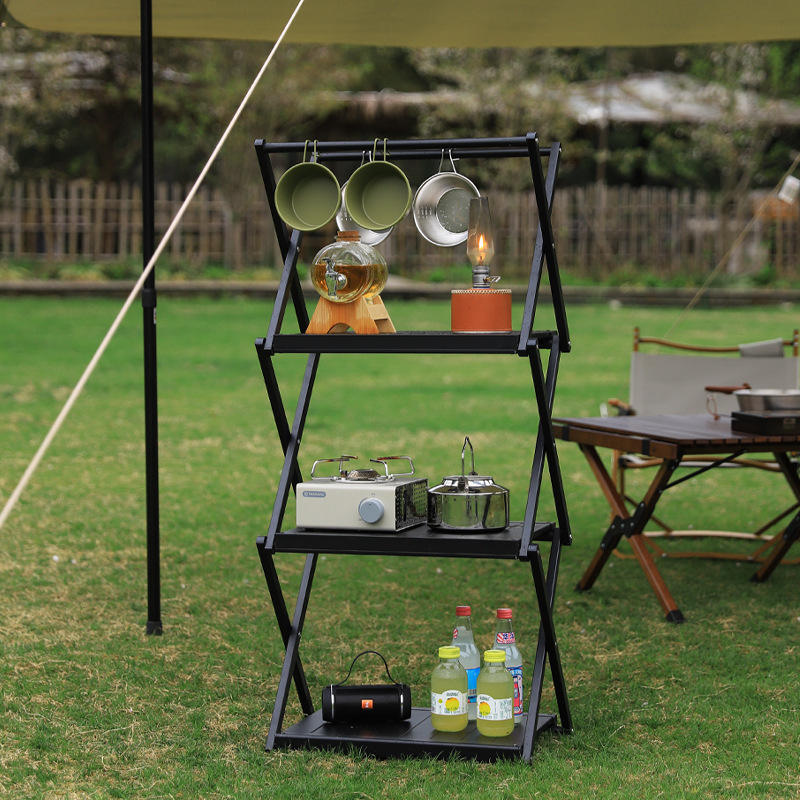 K9050 ชั้นวางของอเนกประสงค์อะลูมิเนียมแบบพับได้ ชั้นวางของกลางแจ้งรูปสี่เหลี่ยมผืนผ้า อลูมิเนียมอัลลอยด์อเนกประสงค์ ชั้นวางของจัดระเบียบ