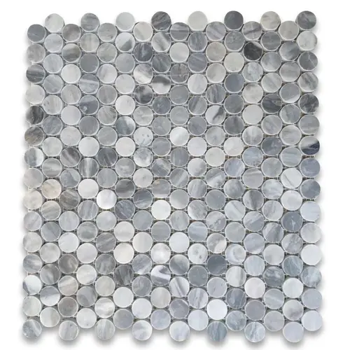 Bardiglio K93XP หินอ่อนสีเทา3/4 \ "กระเบื้องโมเสคอาบน้ำเพนนีกลมหินธรรมชาติแบบคดเคี้ยวพื้นผิวหินอ่อนสีเทา