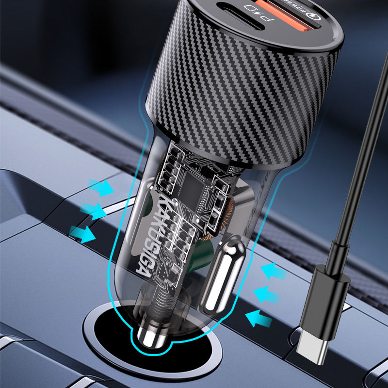 ชุดอุปกรณ์ชาร์จในรถยนต์ KAKUSIGA HighPoint แบบสองพอร์ต PD30W+QC3.0 ชนิด Type-C to Type-C รองรับกำลังไฟ 15W 18W 30W ชาร์จเร็ว