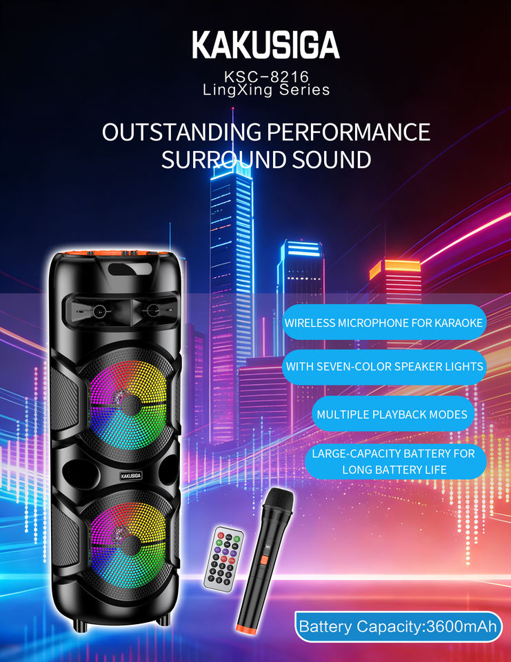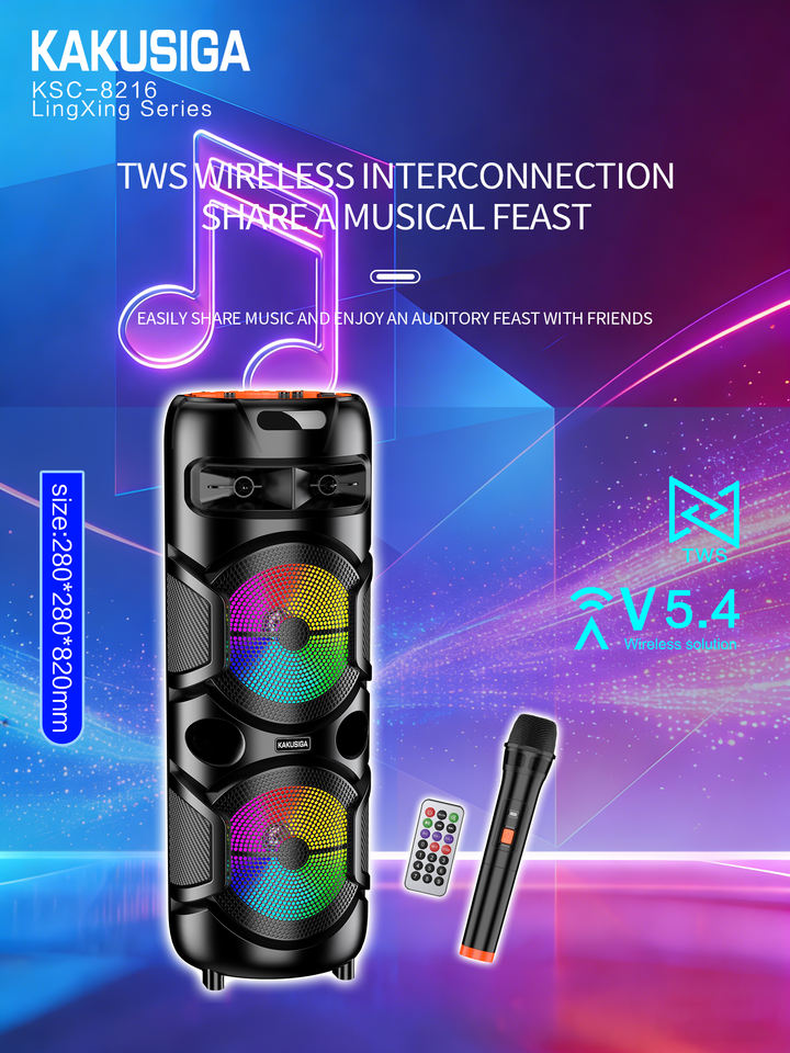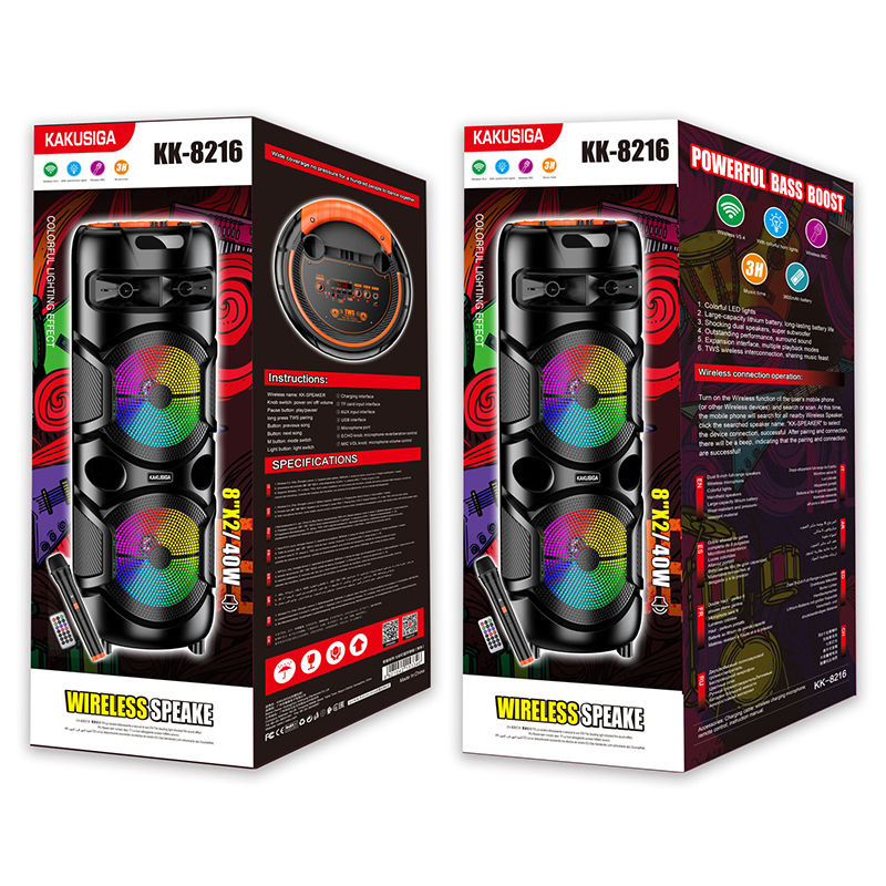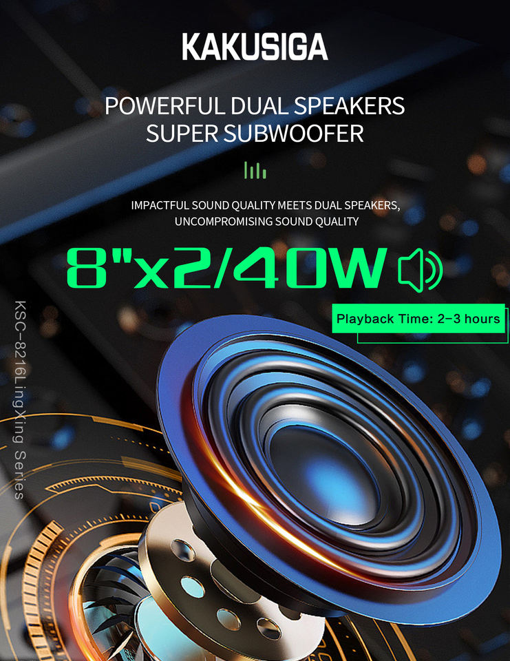 ลำโพงไร้สาย KAKUSIGA 40W คู่ 8 นิ้ว รุ่น 5.4 พร้อมไมโครโฟน ไฟสีสันสดใส เสียงเซอร์ราวด์ TWS สำหรับงานปาร์ตี้ คาราโอเกะกลางแจ้ง บาร์