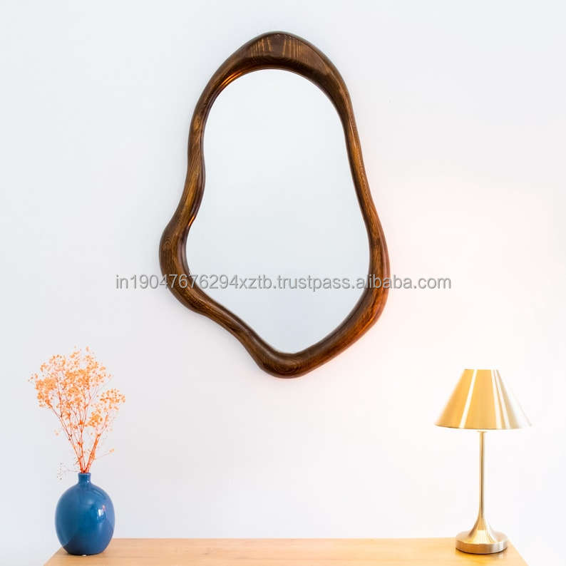 กระจกติดผนังทรงกลมตกแต่งสไตล์อาร์ตเดโค ยี่ห้อ KALATRI ทำด้วยมือ เป็นมิตรกับสิ่งแวดล้อม น้ำหนักเบา กรอบไม้ตกแต่งขอบขัดเงา
