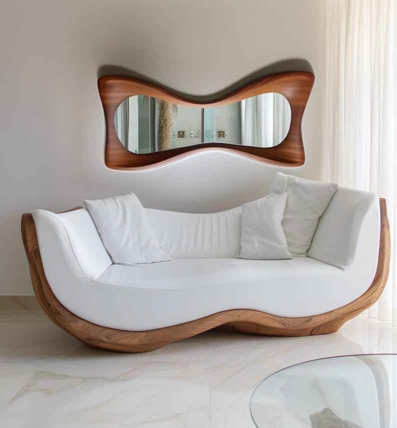 Kalatri กระจกติดผนังทรงวงรีทำด้วยมือทำจากไม้ธรรมชาติเป็นมิตรกับสิ่งแวดล้อมน้ำหนักเบามีเอกลักษณ์ศิลปะแอบสแตรกต์ดีไซน์สวยงาม