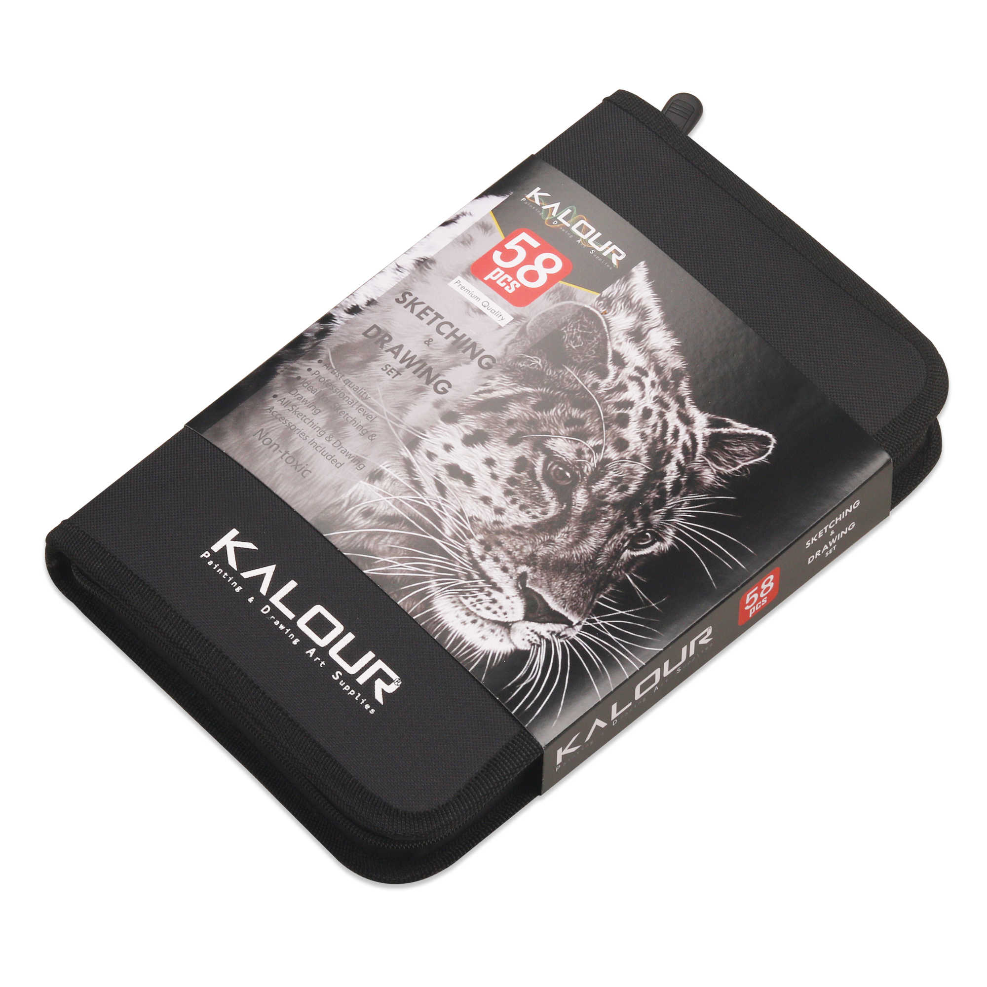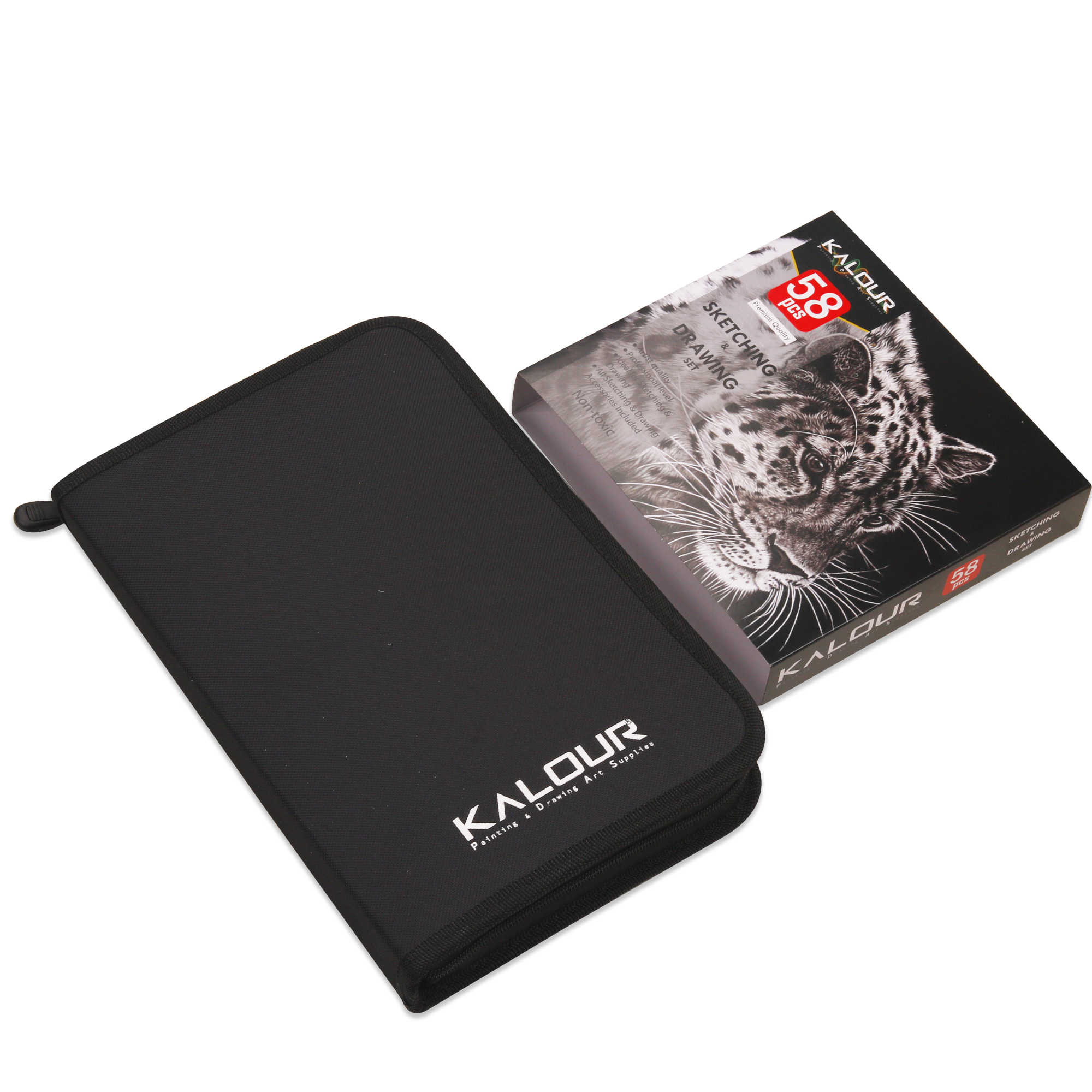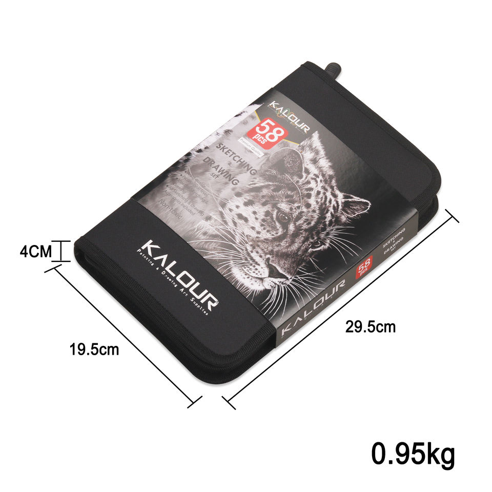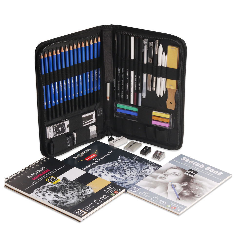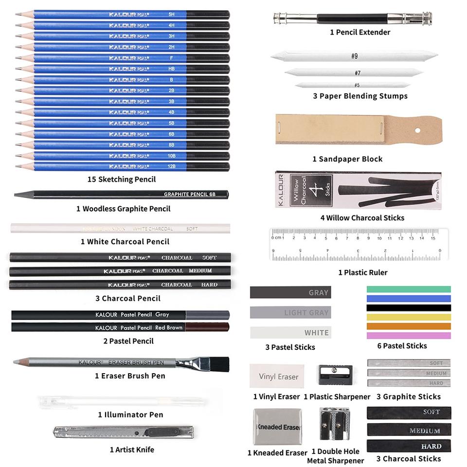 ชุดดินสอวาดเขียนและดินสอถ่าน KALOUR รุ่นใหม่ ขายดี 58 ชิ้น พร้อมสมุดวาดเขียนและคู่มือการสอน