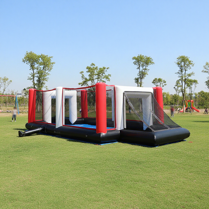 สนามฟุตบอลเป่าลมแบบอินเทอร์แอคทีฟสำหรับใช้ในบ้าน ขนาดสั่งทำได้ ยี่ห้อ KARRY วัสดุ PVC รับประกัน 3 ปี พร้อมเครื่องเป่าลม