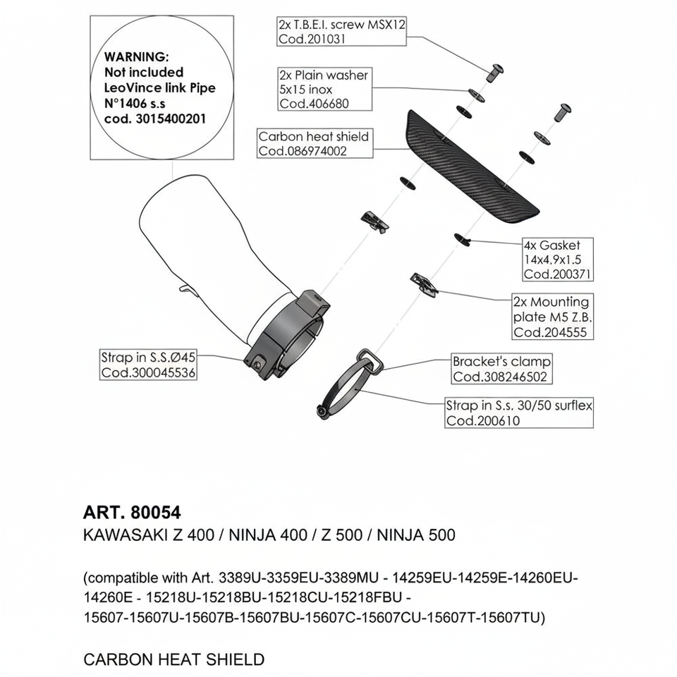 คาวาซากิ Z 400 2019-2021กันความร้อนสำหรับ20358ระบบไอเสียรถจักรยานยนต์