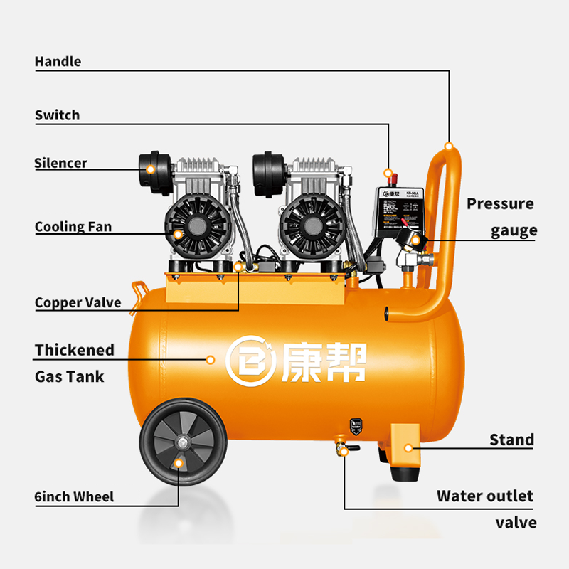 เครื่องอัดอากาศไร้น้ำมันขนาดเล็ก220V 1280W * 2 8bar 50LL KB-50LL