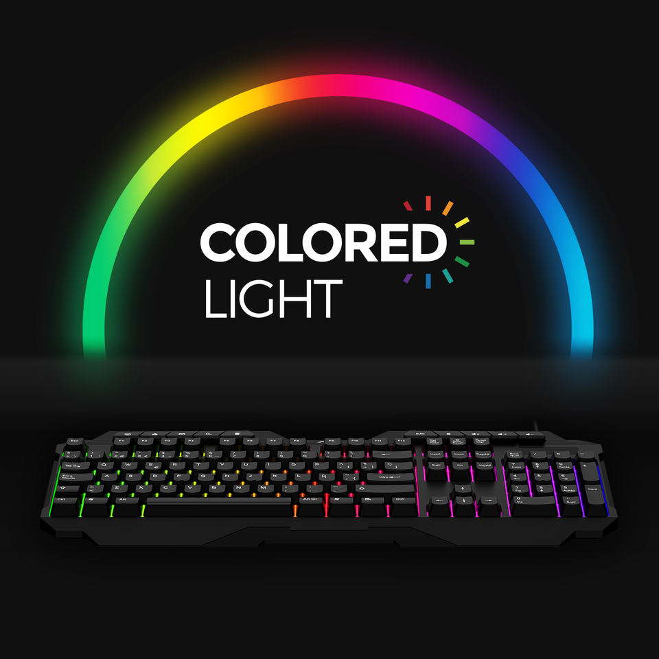 คีย์บอร์ดเกมออปติคอลแบบมีสาย KB-809คีย์บอร์ดแบบมีสายสีดำแบบสเปนพร้อมไฟส่องสว่างหลากสีสำหรับคอมพิวเตอร์ตั้งโต๊ะแล็ปท็อป
