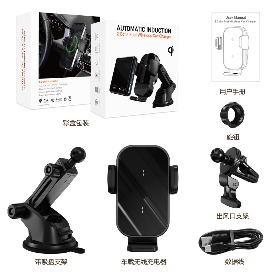 ชื่อผลิตภัณฑ์:เครื่องชาร์จในรถยนต์ไร้สาย15W แบบขดลวดคู่